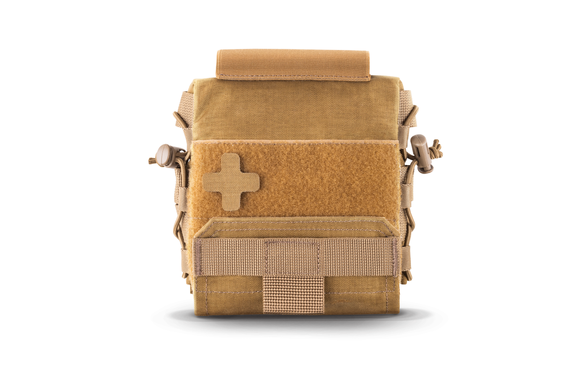Підсумок розроблений лабораторією тактичного спорядження U-WIN Protect разом з тренінговим центром "9Line".- Аптечний підсумок призначений для зберігання в оперативному доступі комплекту для надання індивідуальної допомоги по алгоритму MARCH.- Підсумок максимально плаский (7 см в товщину в наповненому стані)— щоб понизити профіль бійця і не заважати при рухах. - Може носитися на РПС або на бокових камербандах плитоноски.- Ззовні зверху підсумку передбачена резинка для турнікету.- По боках підсумку передбачений МОЛЛЕ-інтерфейс для кріплення додаткових підсумків.- Зсередини аптечка витягується одним рухом вниз.- Модуль зі складовими аптечки тримається на якісній велкро, тому не загубиться підчас відкриття.- Для ножиць передбачений окремий фіксатор з липучкою на платформі.- Стягується зносостійким шок-кордом для максимального зменшення об'єму.- Кріпиться на дві стропи МОЛЛЕ, займає три вертикальних ряди МОЛЛЕ.- Має зовнішню Велкро-панель для патчів і ідентифікаторів.Матеріали:- Оригінальна Cordura 500D (Weber, Німеччина). Тканина має NIR-просочення (не світиться в приладі нічного бачення – відео з тестом, подвійне поліуретанове просочення для відштовхування води , не підтримує горіння, не вигорає на сонці, не витирається. Завдяки запатентованому волокну Invista – має підвищену міцність і зносостійкість, а також зберігає свої властивості тривалий час в екстремальних умовах експлуатації. Відео з порівнянням оригінальної Cordura з підробкою.- Армовані нитки TYTAN з 100% суцільного поліефірного шовку. Відрізняються високою міцністю на розрив і стійкістю до хімічних і механічних чинників. Відео з порівнянням ниток і швів.- Оригінальна фурнітура 2М (Італія)- Якісні резинки, шок-корд з поліаміду найвищої міцності і зносостійкості.- Липучка Velcro Alfatex (Бельгія). Має щільний шар гачків і петель, які зберігають властивості протягом тривалої експлуатації в екстремальних умовах.- Поліамідні стропи. Мають високу міцність, зносостійкість і високу температуру плавлення.- Зовнішні розміри наповненого підсумку з турнікетом 19х16х7 см.- Вага (без наповненя): 285 г.