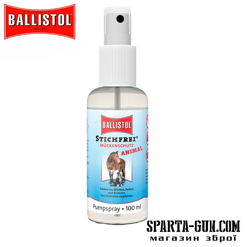 Кроме того, аэрозоль содержит компонент Ballistol Animal для ухода за шерстью и кожей животных.