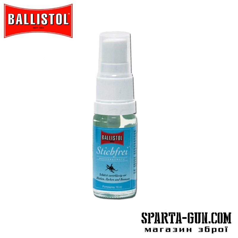 Репеллент Ballistol Stichfrei защищает открытые участки тела от укусов большинства насекомых таких как комары, клещи, оводы, мухи, москиты, мошки и т. д. Обеспечивает защиту до 8 часов. Также защищает от солнечных ожогов. Содержит фильтр UV-B (SPF 6).